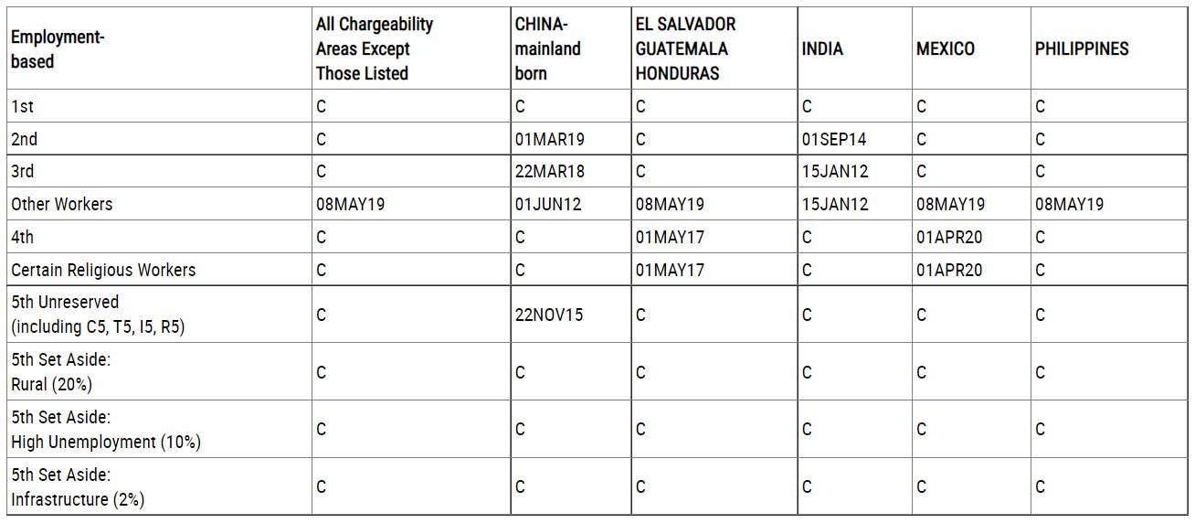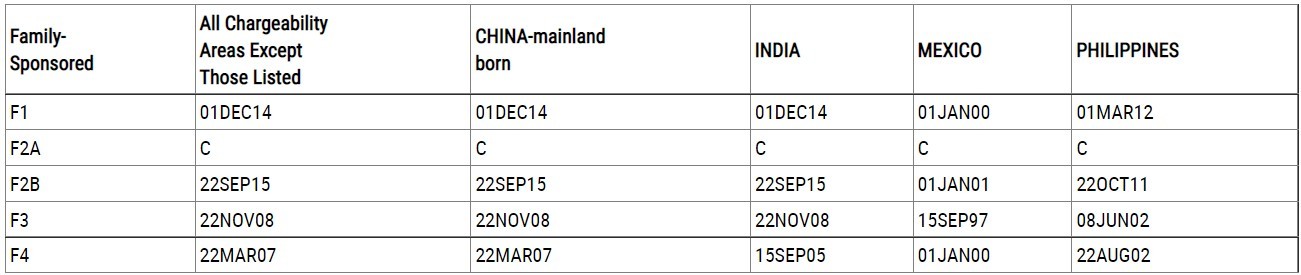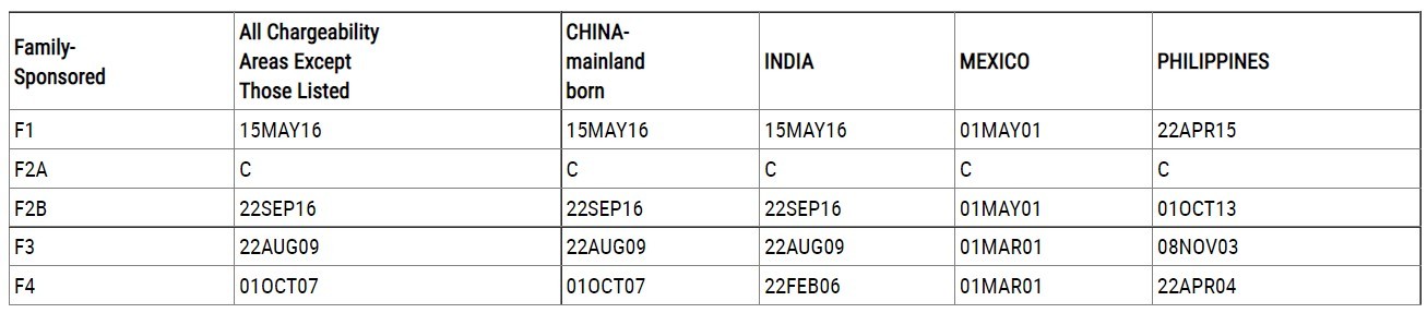 中国大陆出生亲属移民类审批排期(表A):