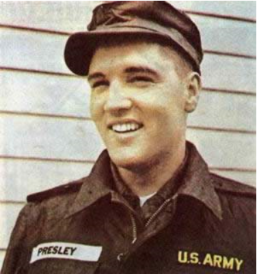 1958年3月24日,美国当红歌星猫王埃尔维斯-普雷斯利一大早到田纳西州的孟菲斯市第86号地方征兵局报到,用摇摆舞的桂冠换取一套军服,成为美军第53310761名士兵。