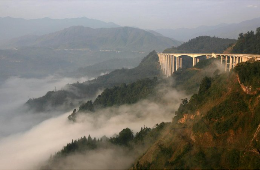 四川雅西高速2007年3月19日开工,2012年4月28日竣工,雅西高速起于雅安对岩镇,经雨城区、荥经、汉源、石棉,止于凉山彝族自治州冕宁县泸沽镇,全长240千米,被誉为“天梯高速”。展布在崇山峻岭之间,山峦重迭、地势险恶,沿线区域的海拔从600米爬升到3200米,相对高差堪比一座峨眉山。