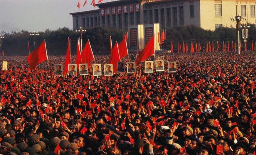 1966年夏,毛泽东、林彪在天安门城楼上 “通知”提出,向混进党、政、军、文各界的“资产阶级代表人物”开展彻底批判清洗,夺取文化领域中的领导权。标志着十年文革正式开始。
