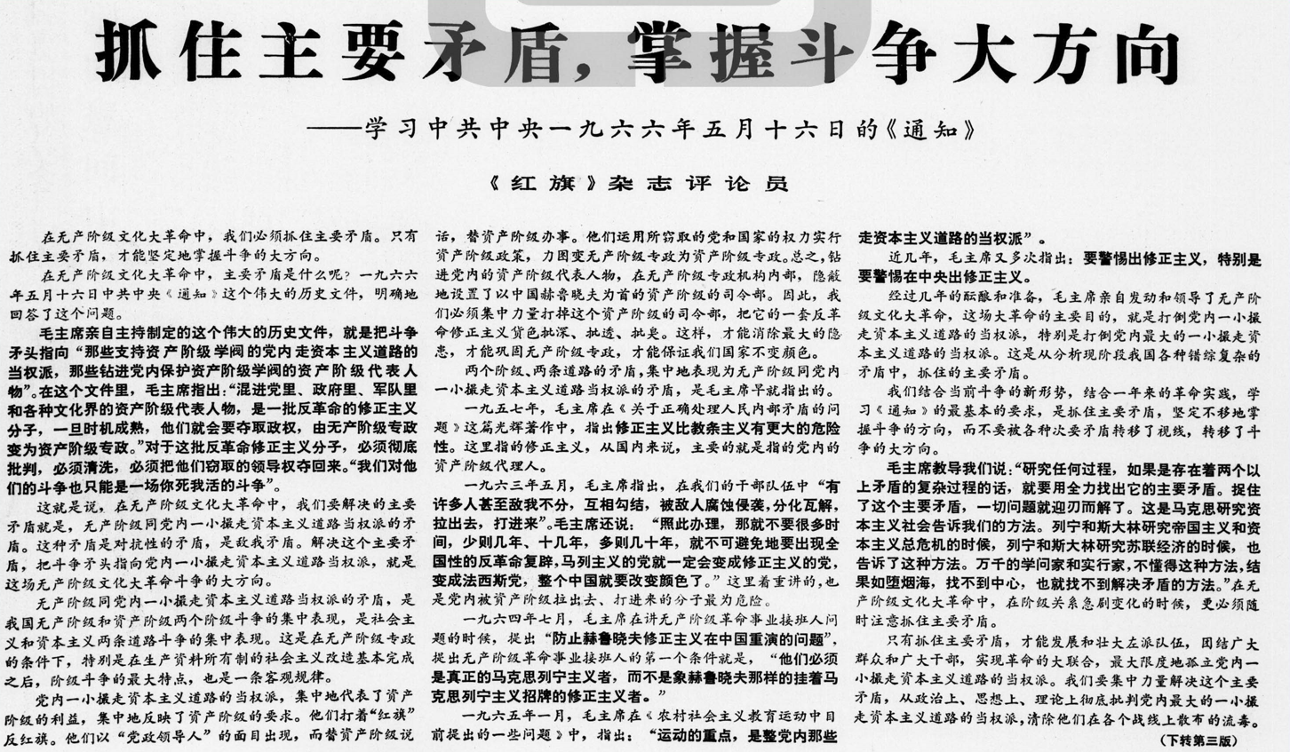 8月7日,刘少奇给毛泽东写信,严正抗议给他扣上反党反社会主义的帽子,书面向毛泽东提出辞呈,并向毛泽东写明:“我已失去自由。”同日,《人民日报》全文发表毛泽东一年前写的《炮打司令部》,并发表社论:《炮打资产阶级司令部》。在无产阶级专政机构内部,存在着两个根本对抗的司令部。一个是以毛主席为首的无产阶级司令部,一个是以中国的赫鲁晓夫为首的资产阶级司令部。一小撮走资本主义道路的当权派,与无产阶级司令部相对抗。因此,从政治上、思想上、理论上把他们批深批透批倒批臭,这就是给资产阶级司令部最彻底、最致命的摧毁。
