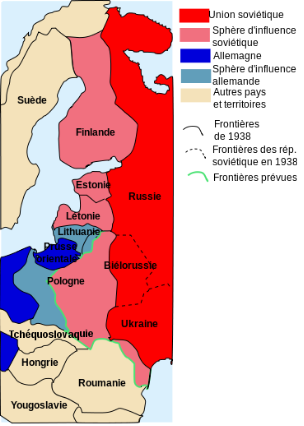 除互不侵犯条约外,苏德双方还签订了一份秘密附加协议书,也被称为里宾特洛夫-莫洛托夫秘密协议案,其中规定: