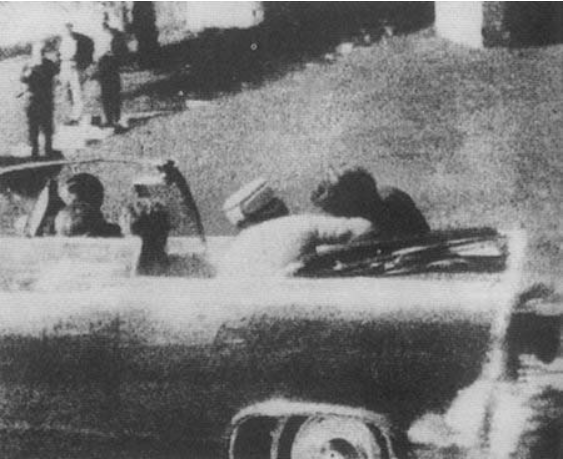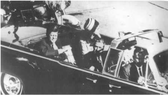 1963年11月22日,肯尼迪夫妇和得克萨斯州州长康纳利夫妇同乘一辆敞篷汽车,从欢迎的人群中间缓缓驶过,准备在达拉斯市区发表一篇演说。当车队驶经一座大楼的时候,从大楼五层楼上的 一个窗户里射出三发子弹,其中一发击中了肯尼迪的头部太阳穴。半小时后,肯尼迪在医院去世。