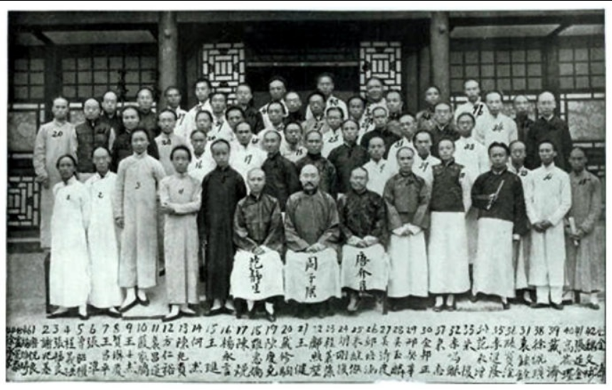 1909年,第一批庚子赔款留美学生与游美学务处总办周自齐、会办唐国安和范源濂合影