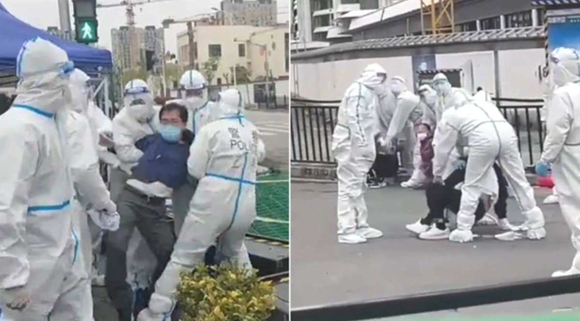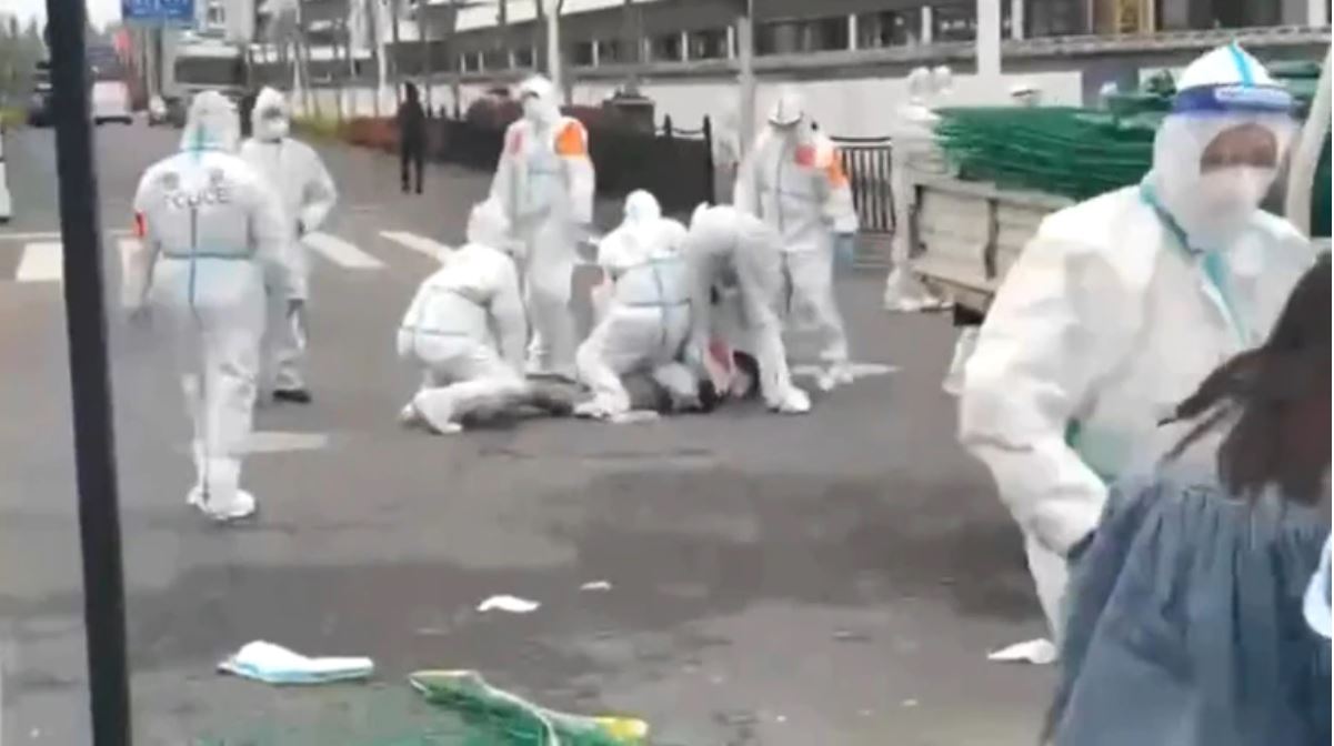 现场影片曝光显示,穿着全身防护服的警察,暴力抓多许多民众,甚至老人也在地上被拖行,有人跟警察下跪磕头,有人则抨击“警察就是这样子,要把1800个阳性病人塞进我们全阴小区(指社区居民都筛检阴性),打我们居民、打我们老人、打我们女人,我们下跪求饶都不行,来一个抓一个打一个。”