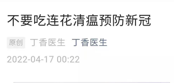 前两天,丁香医生这个中国顶级权威医学媒介,就明确喊出“不要吃连花清瘟预防新冠”。