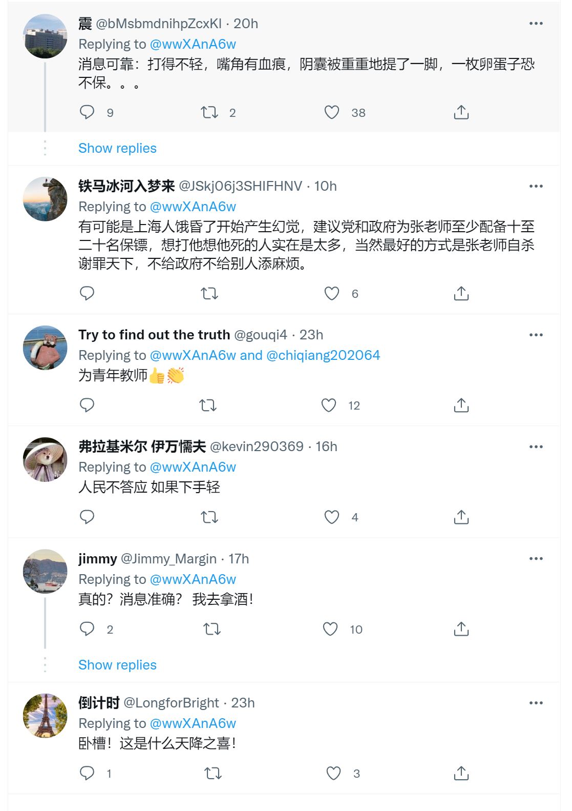 另外,在还未推特上还有网友爆料,称“消息可靠:打得不轻,嘴角有血痕,阴囊被重重地提了一脚,一枚卵蛋子恐不保”,消息无法求证。