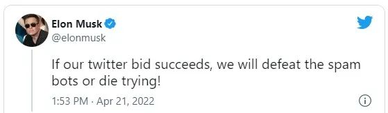 马斯克在宣布这笔440亿美元交易的新闻稿中发表声明说:“言论自由是民主运作的基石,而推特是数字城镇广场,人们在此讨论对人类未来至关重要的问题。”“我还希望通过使用新功能增强产品、使算法开源以增加信任、击败垃圾邮件机器人以及对所有人进行身份验证,让推特变得比以往更好。推特具有巨大的潜力——我期待与公司和用户社区合作来解锁它。”