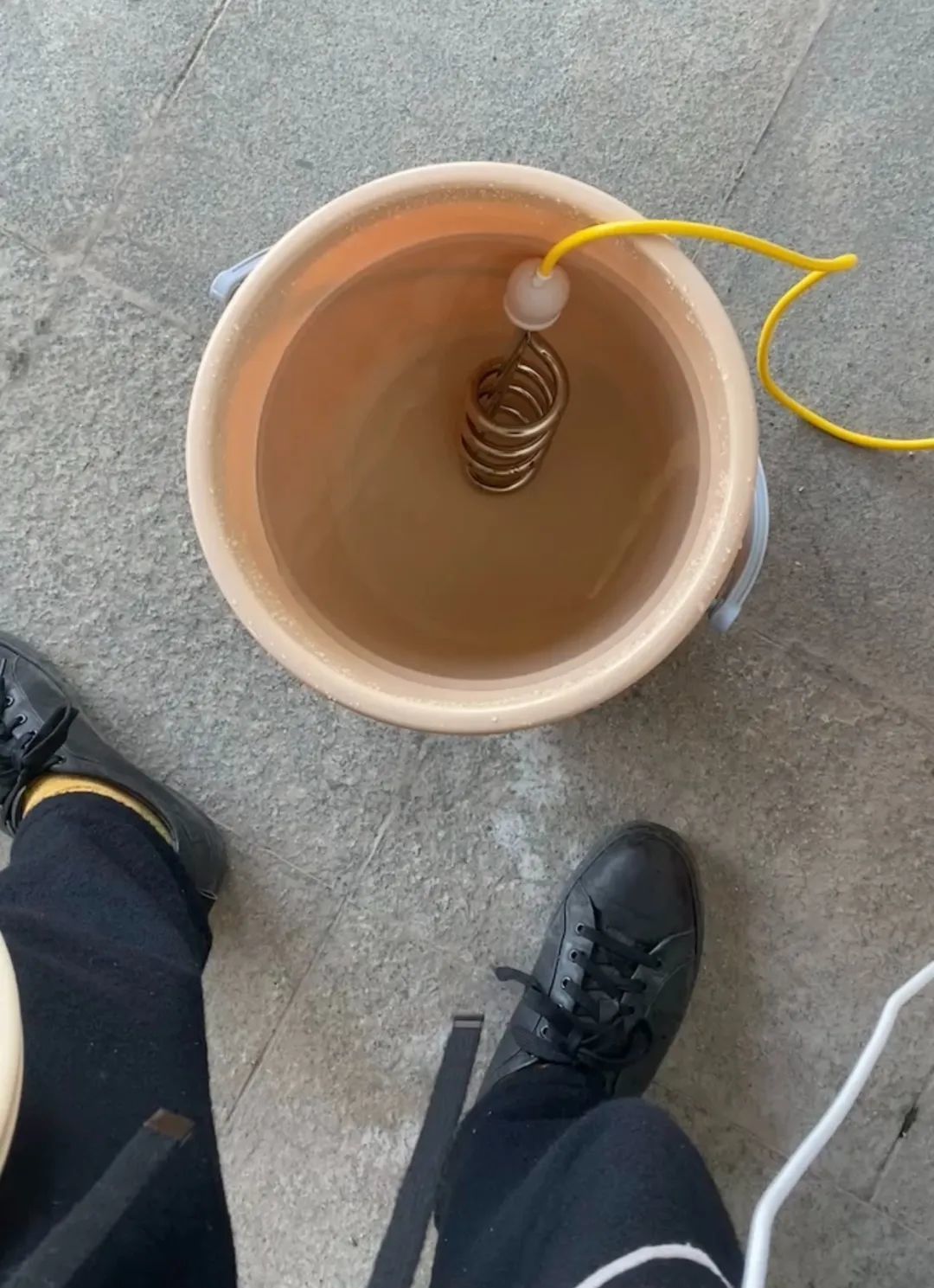 有了电,我们就能烧热水洗澡了,用最原始的那种“热得快”,把一筒水加热。我们男生反正穿条短裤,身上先用水打湿,抹上沐浴露然后冲掉,每天都洗。