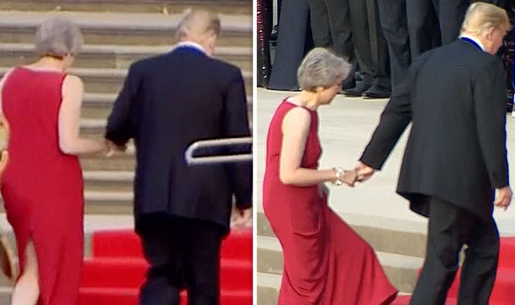 第一次 ,川普和特丽莎·梅在去新闻发布会的路上,经过英国乡村的庄园契克斯,在两人走下一小段楼梯时, 川普突然拉住了梅(May)的手 ,这一举动也在社交媒体引来热议。