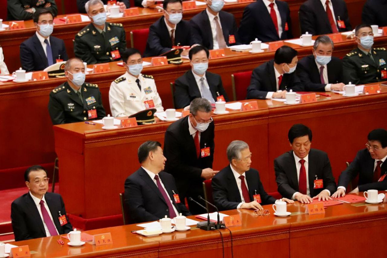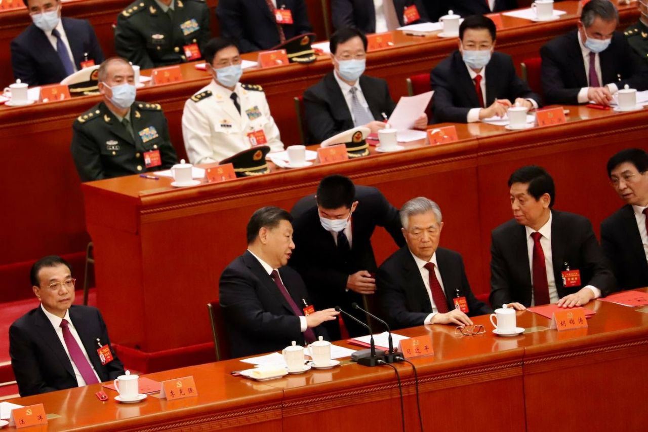 10月22日,据《时刻新闻》报道,中共20大北京时间10月22日闭幕,中共前总书记胡锦涛“被拖离会场”的画面,过程中胡锦涛面露不悦、多次抗拒,还向习近平唸了两句,引发全球震惊。据悉,在胡锦涛被架起来前,与工作人员已经僵持了20多秒。另外有ABC的西语记者爆料,胡锦涛被带走似乎与“文件夹”有关。