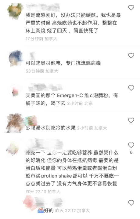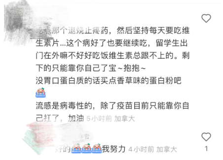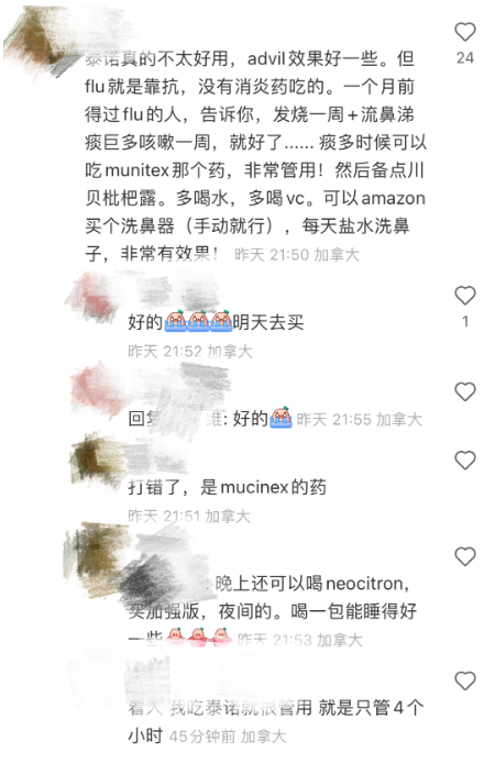 当然,还有很多华人热心的给出关于该吃什么药的建议!希望现在正在经历流感的华人朋友们看到,快快好起来~~~