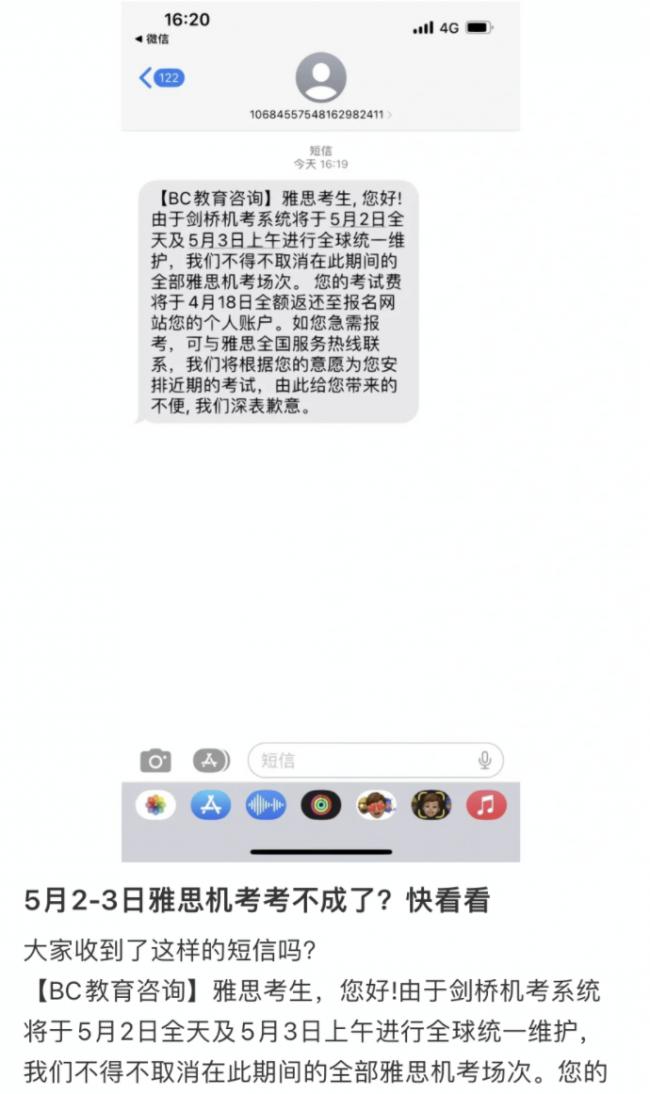 近日,据了解,许多雅思er都收到了考试取消的短信!